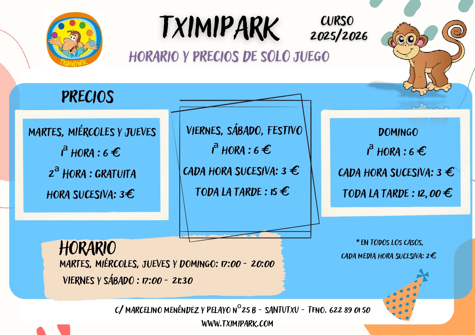El Tximipark recrea una gran selva con palmeras, lianas, obstáculos y animales muy divertidos y llenos de color que sacarán las mejores sonrisas de las y los más pequeños de la casa.
